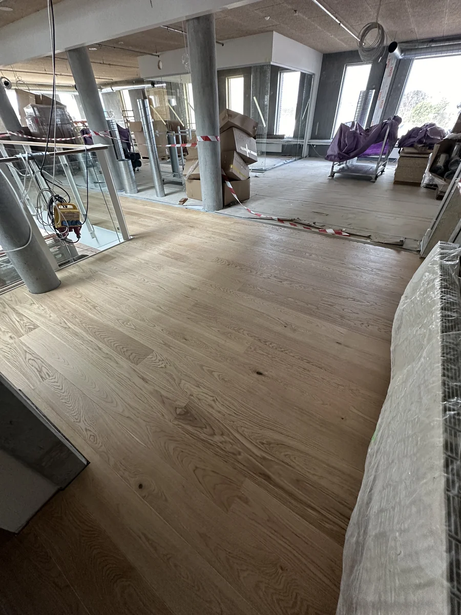 Udførelse af i alt 6.000 m² Boen Oak Finale parketgulv.