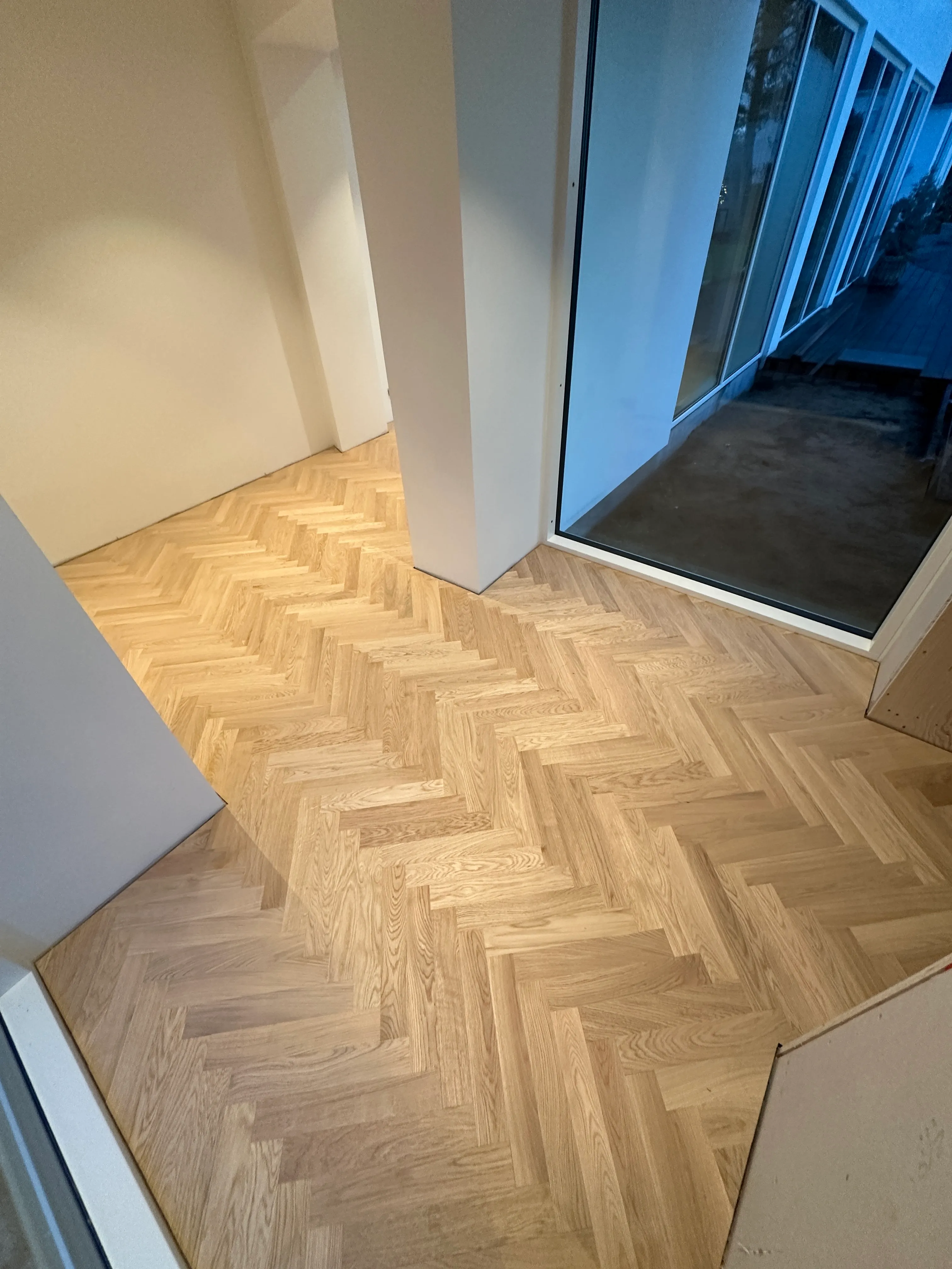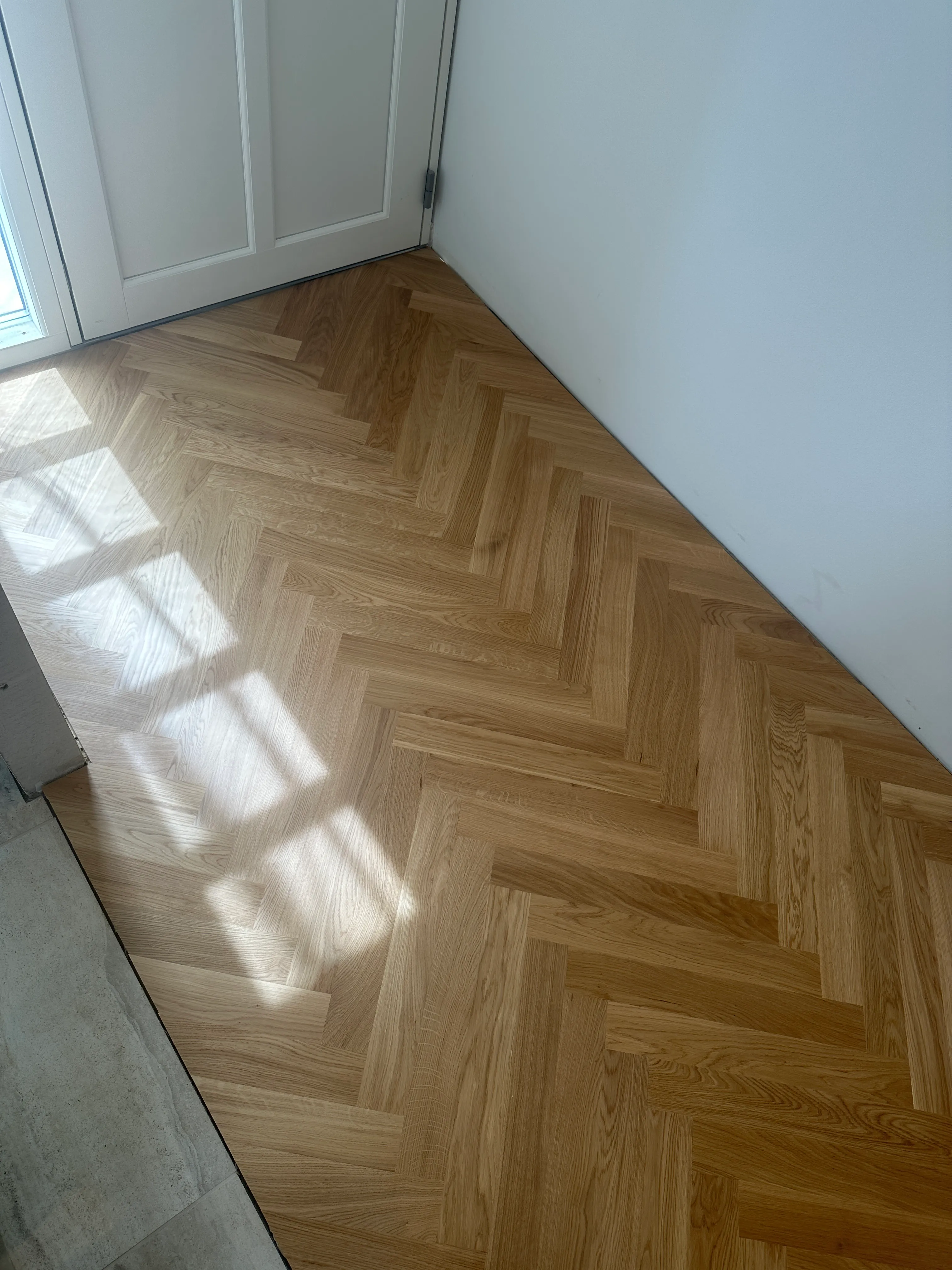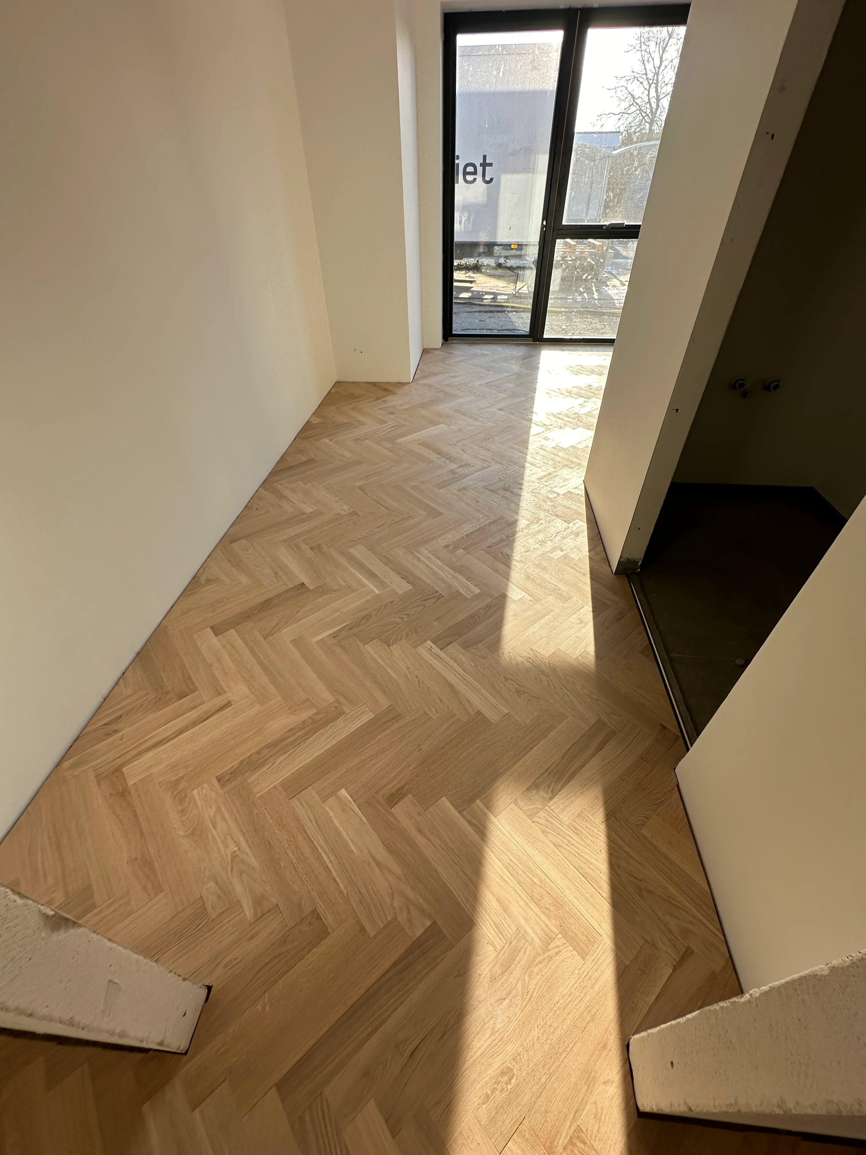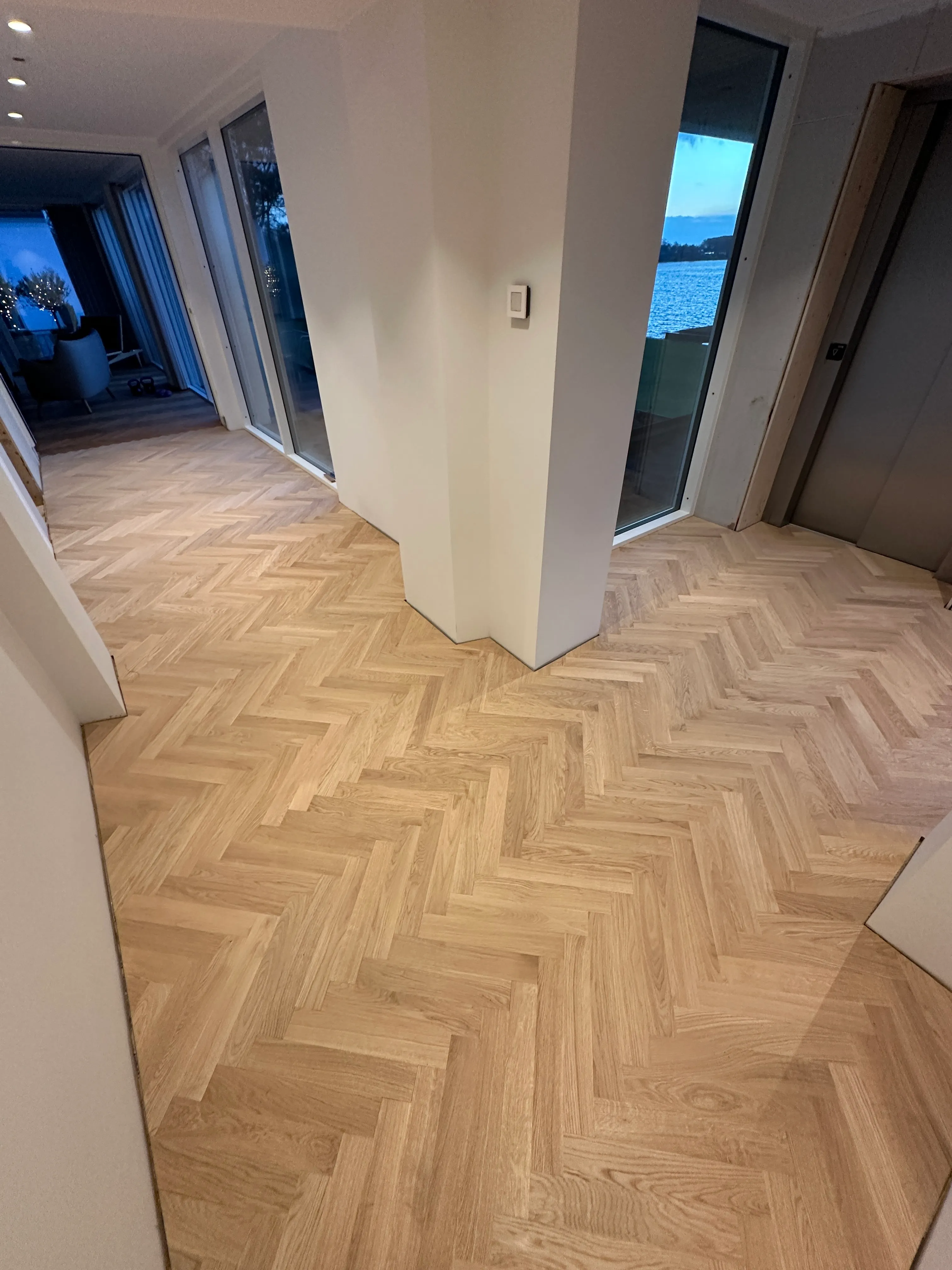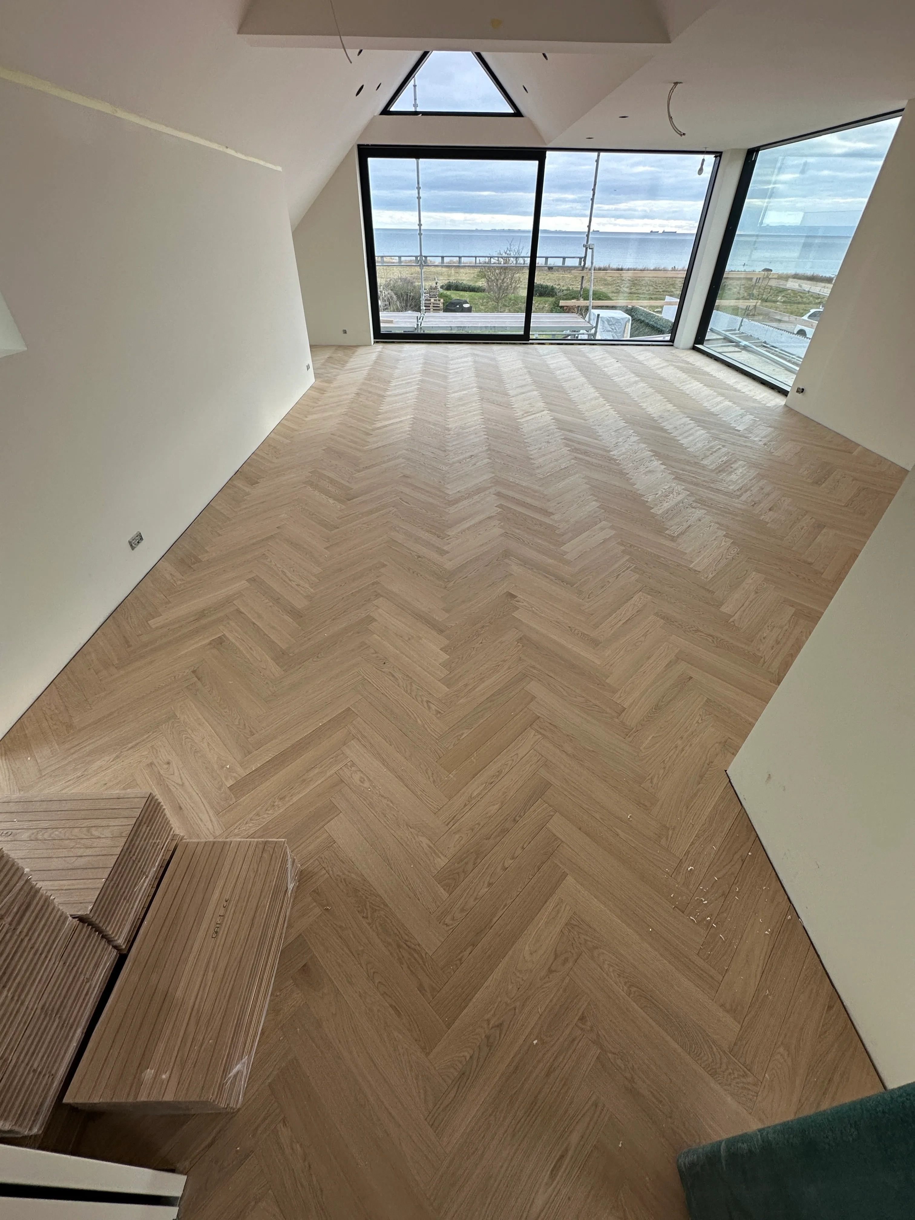 Efter installation kan sildebensparket behandles med forskellige finish-løsninger. Naturlig olie fremhæver træets struktur og er nem at vedligeholde. UV-lakering giver en robust overflade med høj modstandsdygtighed. Hårdvoksolie kombinerer det bedste fra begge verdener. Vi hjælper dig med at vælge den behandling, der passer bedst til dit behov.