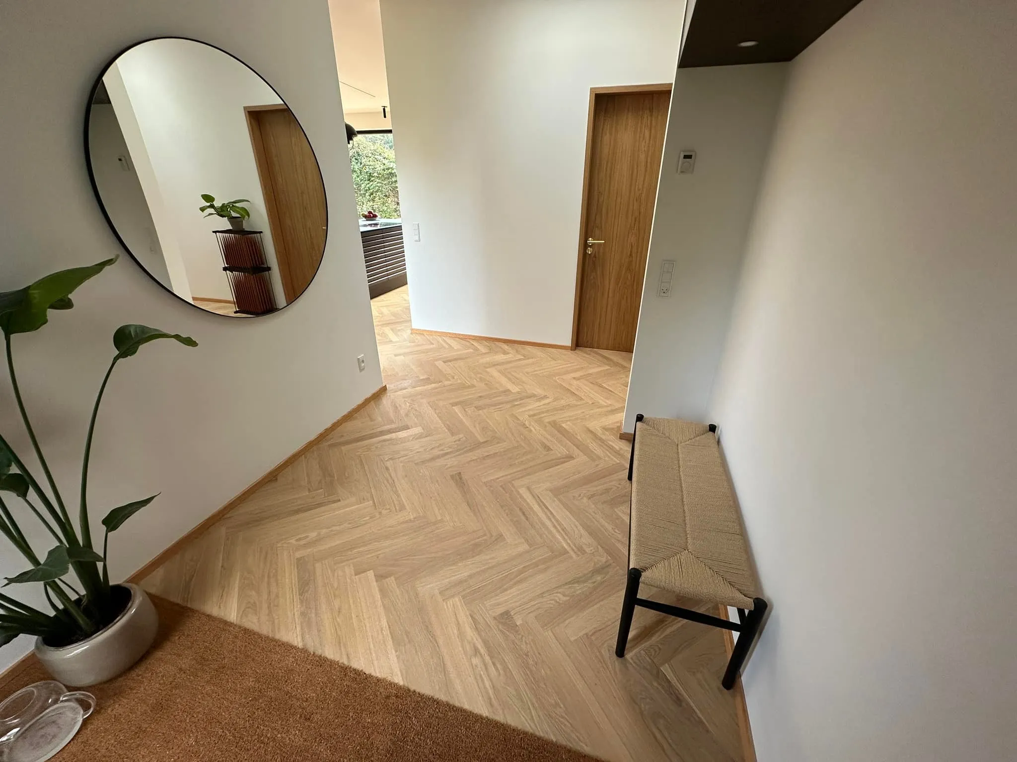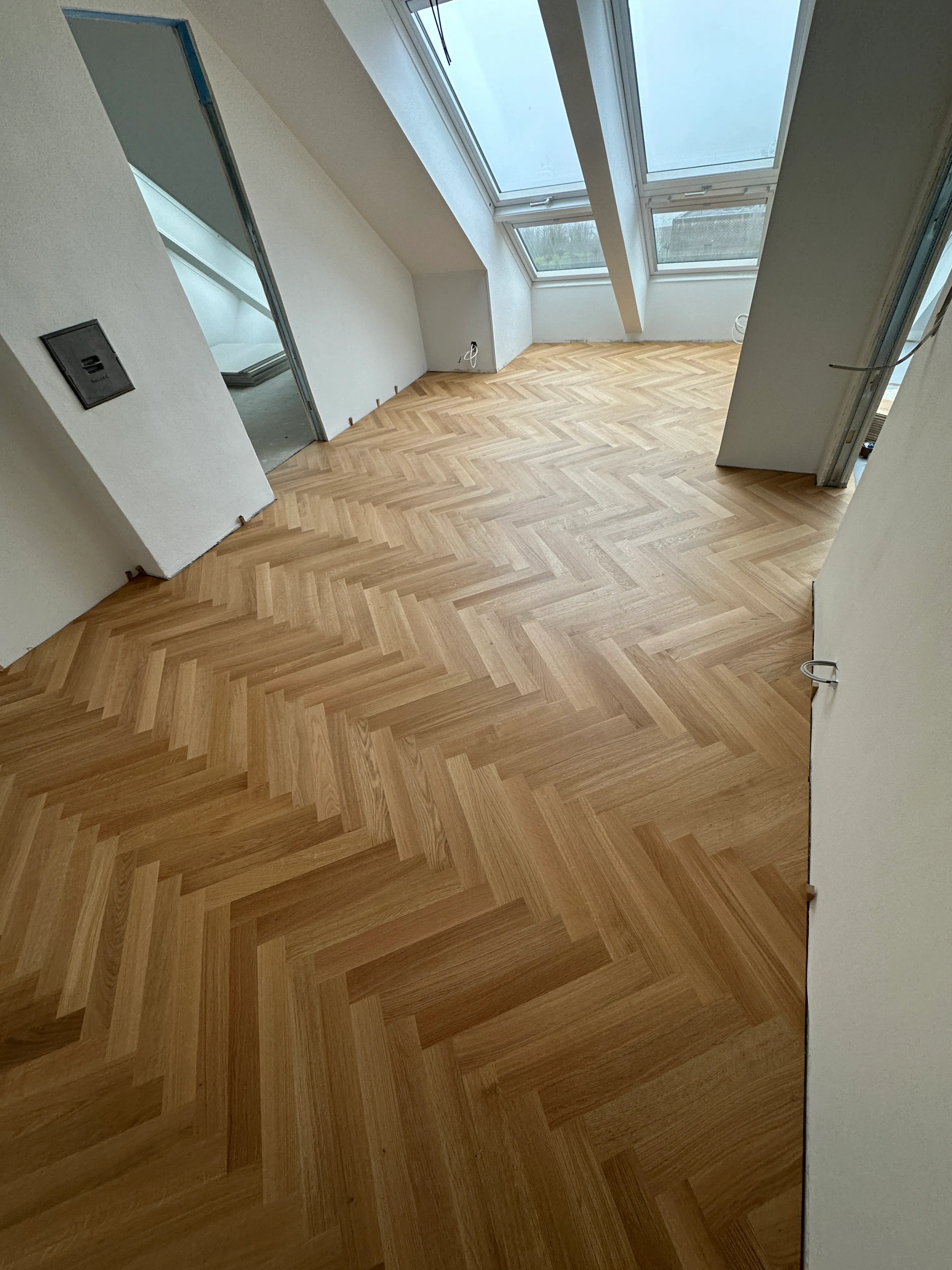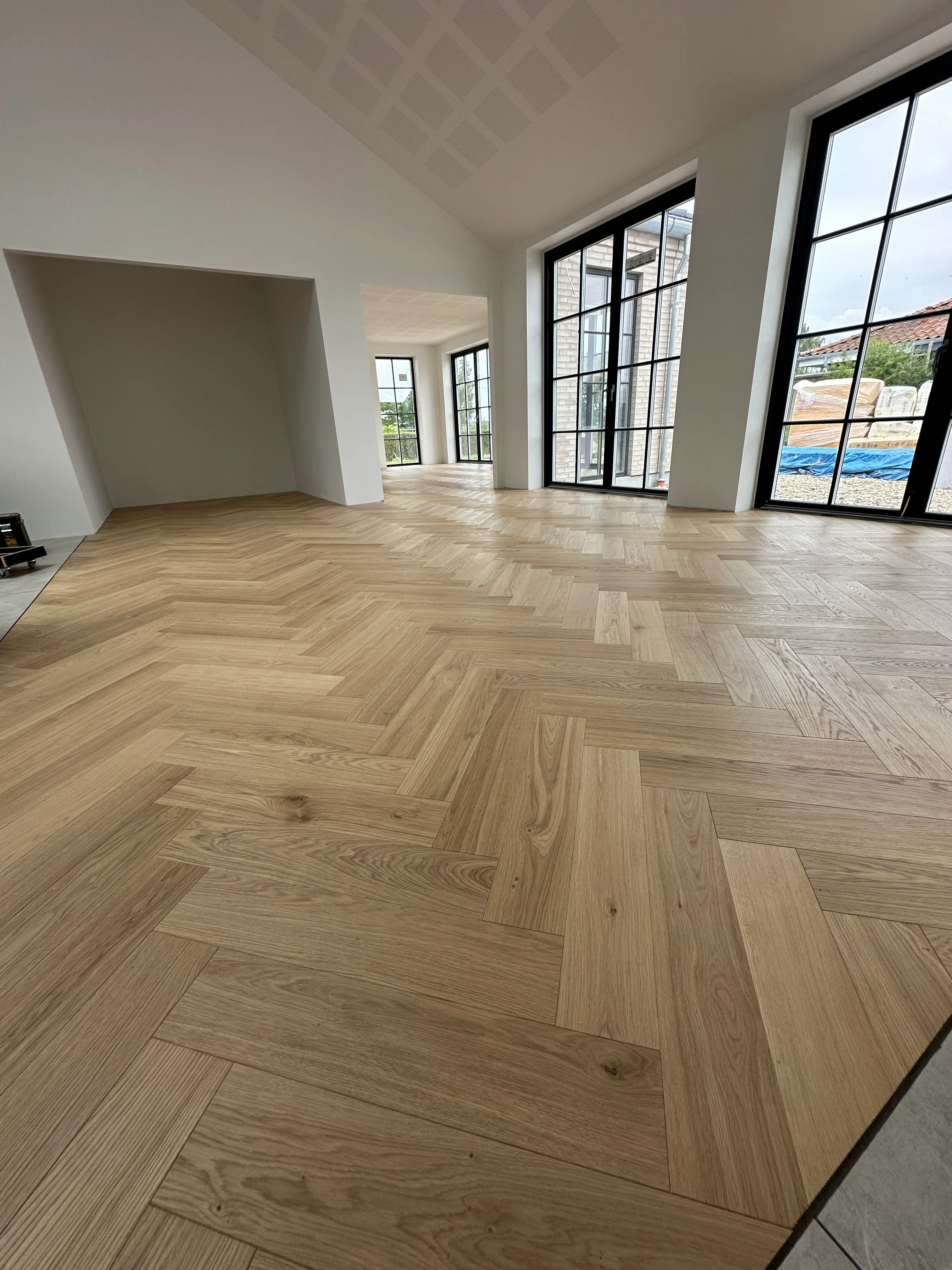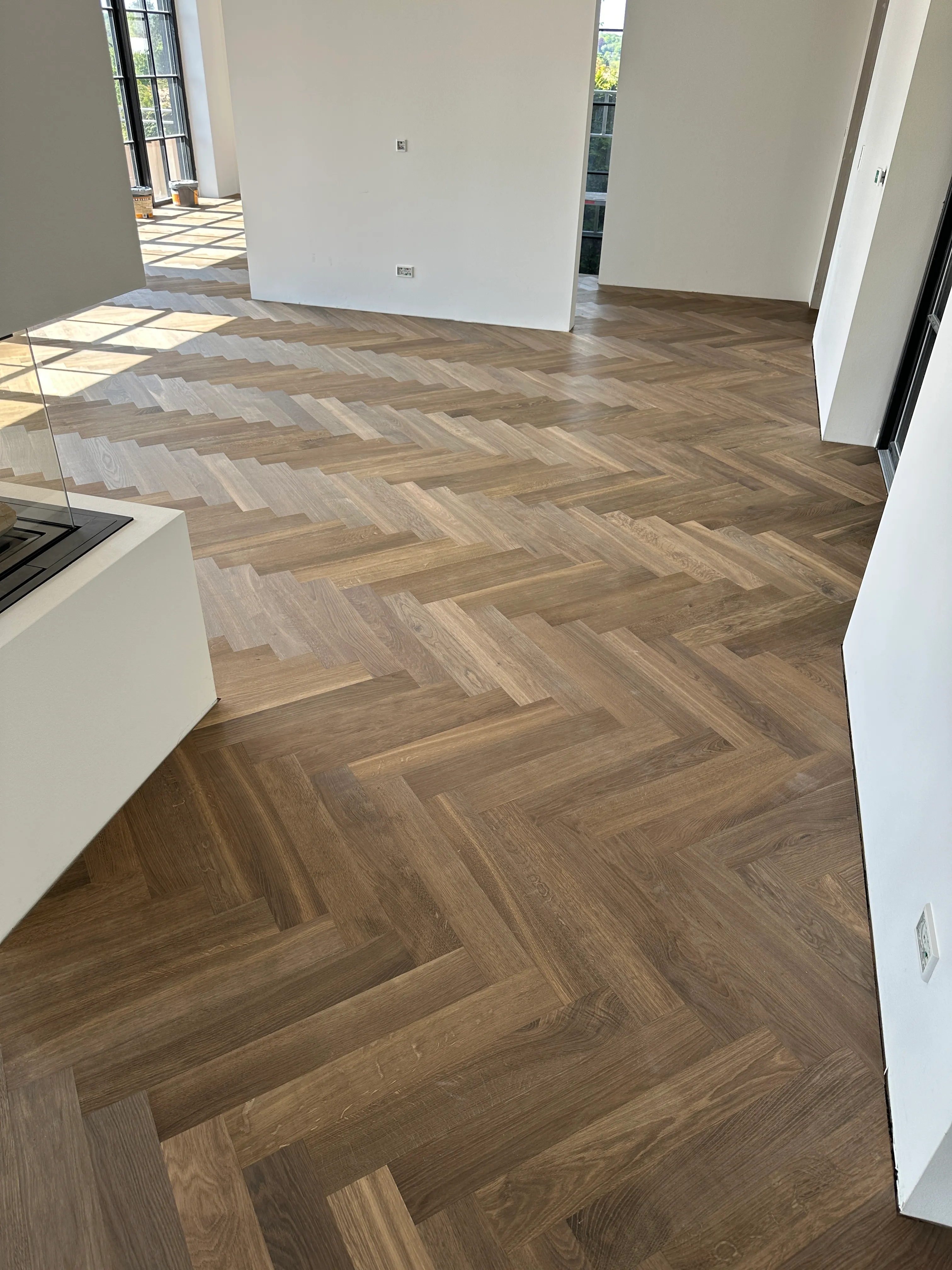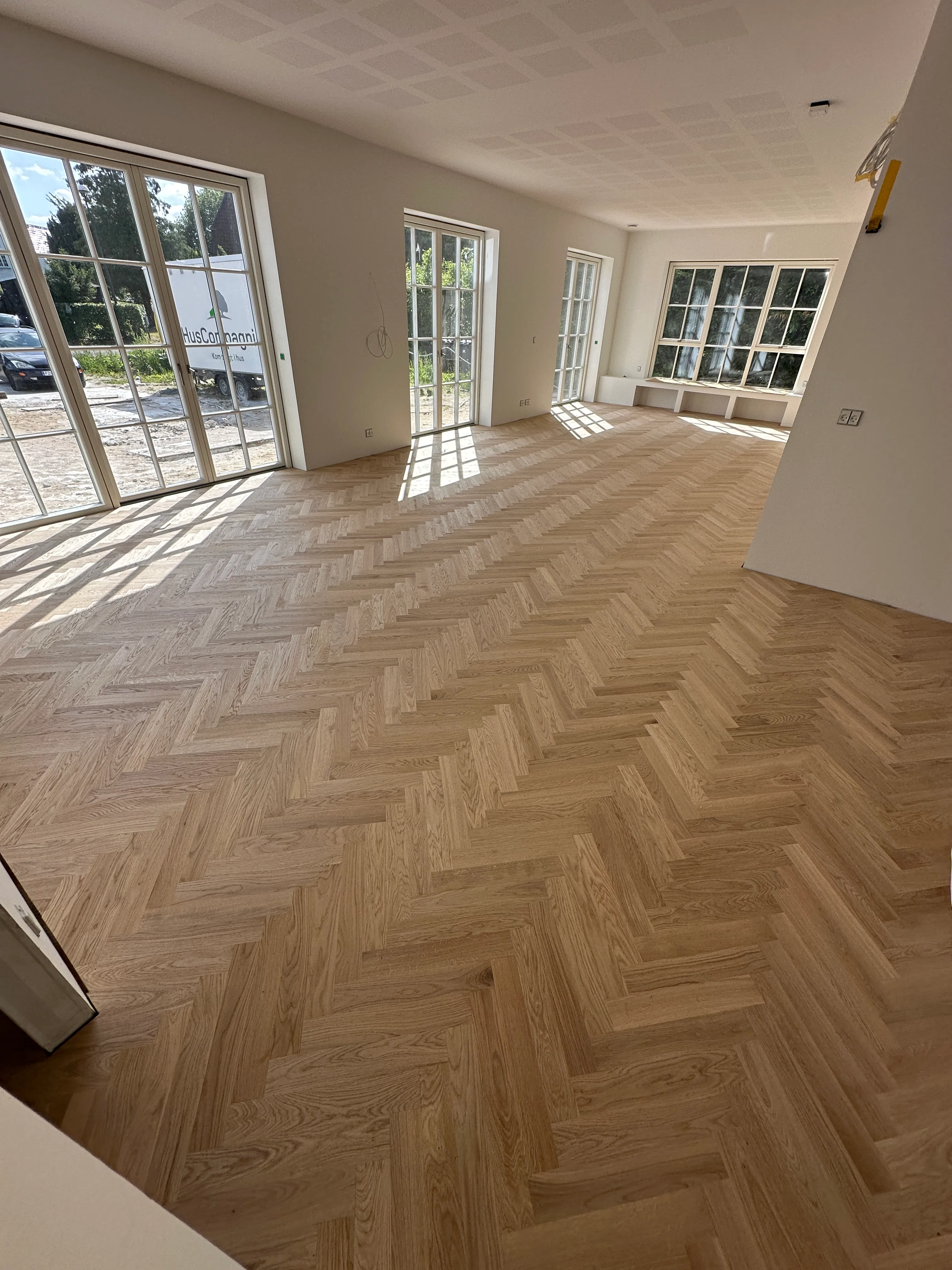 Efter installation kan sildebensparket behandles med forskellige finish-løsninger. Naturlig olie fremhæver træets struktur og er nem at vedligeholde. UV-lakering giver en robust overflade med høj modstandsdygtighed. Hårdvoksolie kombinerer det bedste fra begge verdener. Vi hjælper dig med at vælge den behandling, der passer bedst til dit behov.